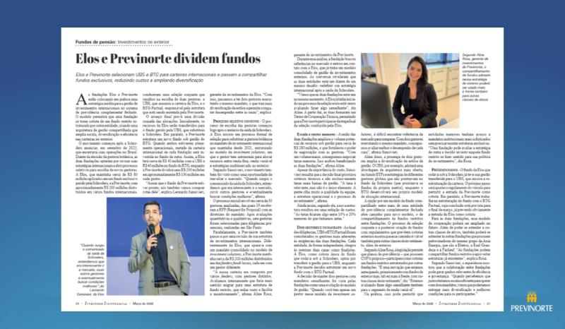 A edição nº 384 da Revista Investidor Institucional (páginas 20 e 21) apresentou a parceria inovadora de gestão compartilhada de fundos exclusivo no exterior entre a Previnorte e a Elos, ressaltando o impacto disruptivo dessa iniciativa no setor de previdência complementar brasileiro.